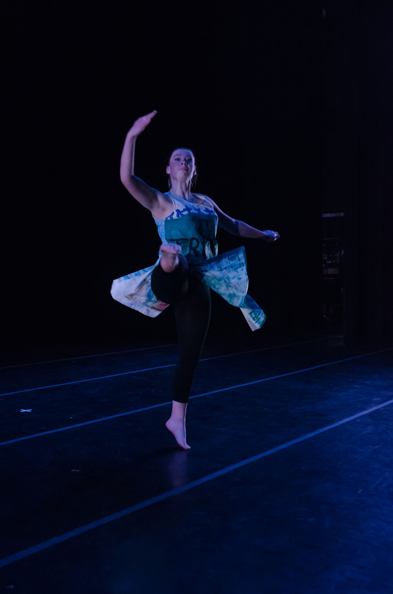 This dance is based on conversations and movement explorations between University of Michigan-Flint dance students and members of Vista Center, a drop-in center for adults with disabilities. The dance represents the exchange of shared emotional experiences between the two groups and is based on the journey of moving from broken trust toward healing, including how it is different for everyone. Vista members contributed to the poetry that is spoken by the dancers, and original piano music was written by Vista staff member Greg Zafiroff. Collaborative visual art was created on the costume canvases and individual art works were created for exhibit in the UM-Flint theatre lobby.